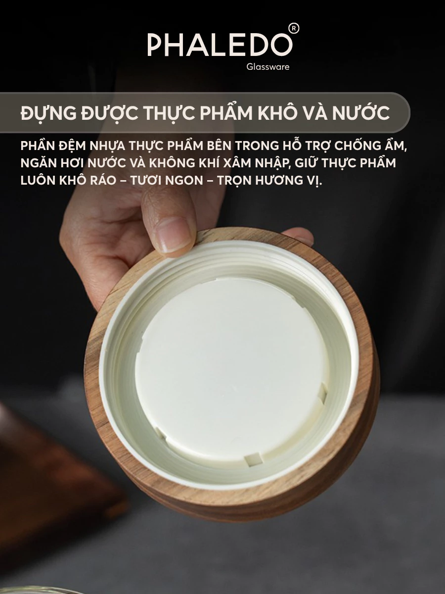 Nếu bạn đang tìm kiếm một chiếc hũ đáp ứng đầy đủ các tiêu chí trên, HŨ THỦY TINH BOROSILICATE CỔ CAO XOĂN KÍN NẮP GỖ KEO DUNG TÍCH LỚN PHALEDO (PL‑0373A) là một lựa chọn đáng cân nhắc. Được làm từ thủy tinh borosilicate cao cấp, hũ có thiết kế nắp kín gỗ keo đa lớp, giúp giảm tối đa lượng không khí lọt vào. Dưới đây là những điểm nổi bật của sản phẩm: