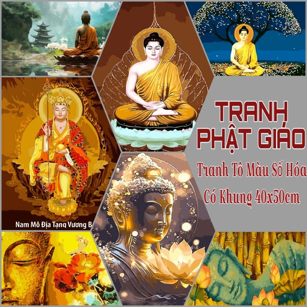 Giới thiệu sản phẩm: Tranh tô màu sơn dầu theo số hóa Phật Giáo kích thước 40x50cm
