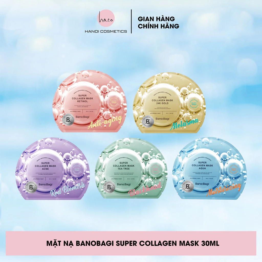 - Tên sản phẩm: Hộp 10 Miếng Mặt Nạ BANOBAGI Super Collagen Dưỡng Da Chuyên Sâu 30ml