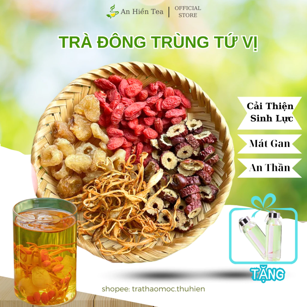 🔥 Trà Đông Trùng Hạ Thảo Long Nhãn Tứ Vị giúp đẹp da bồi bổ sức khỏe,nguyên liệu hữu cơ, sấy lạnh đang giảm giá!