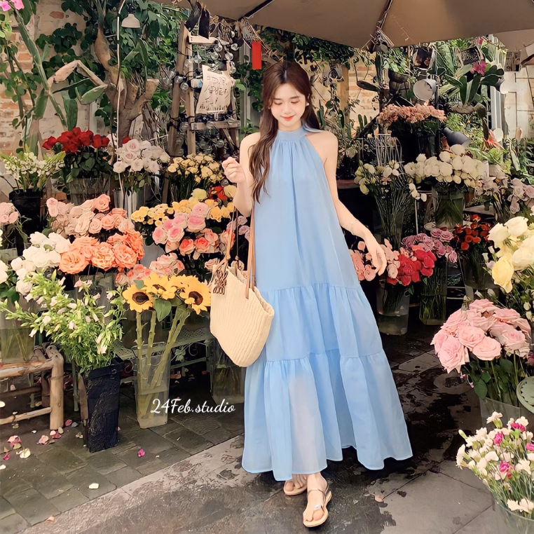 🔥 Váy maxi nữ voan tơ cổ yếm đính nơ phong cách tiểu thư nhẹ nhàng GheStudio V46 đang giảm giá!