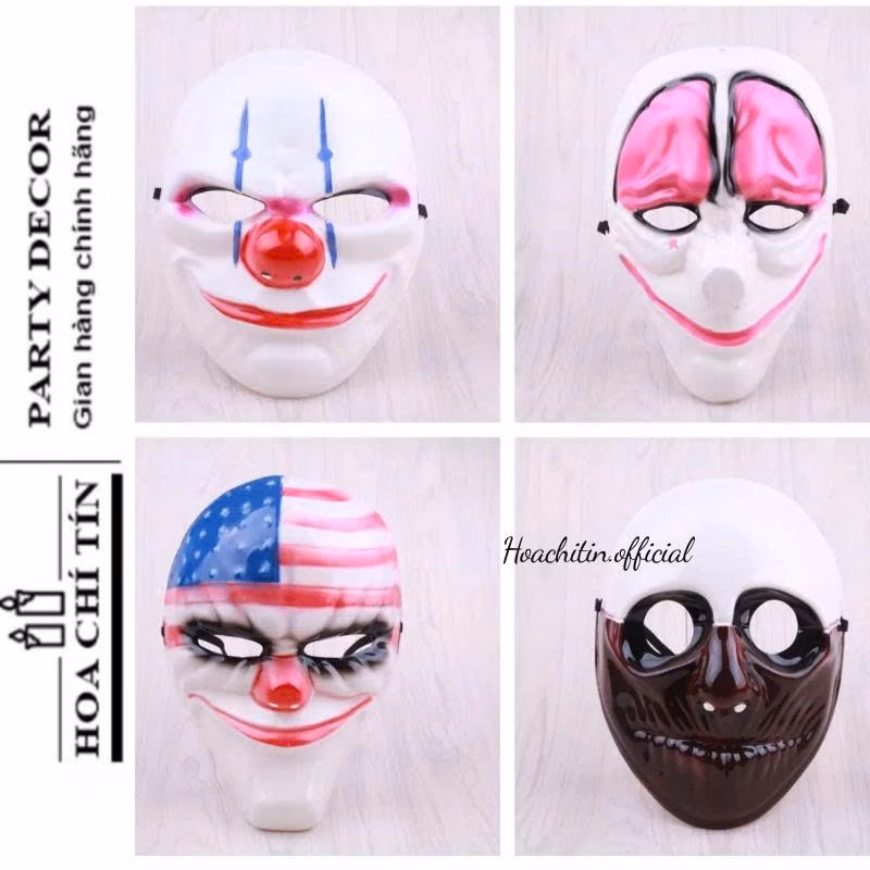 Mặt nạ chú hề Payday là một sản phẩm được thiết kế dựa trên hình ảnh chú hề từ bộ phim Payday, nổi tiếng với cốt truyện về vụ cướp táo bạo và đầy gay cấn. Mặt nạ này được sản xuất với mục đích mang lại cho người đeo một diện mạo kinh dị, ấn tượng, phù hợp với không khí Halloween.
