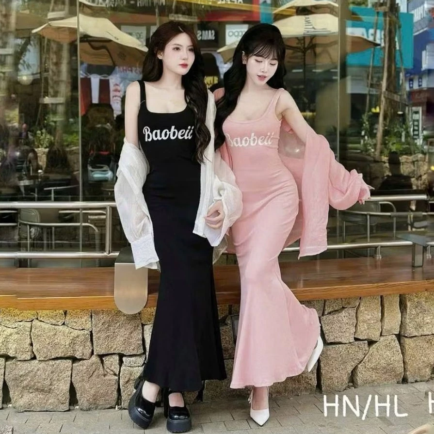 - Tên sản phẩm: Đầm maxi nữ 2 dây ôm dáng dài xòe nhẹ phối áo khoác mỏng – Váy body tăm lạnh mặc đi chơi đi biển